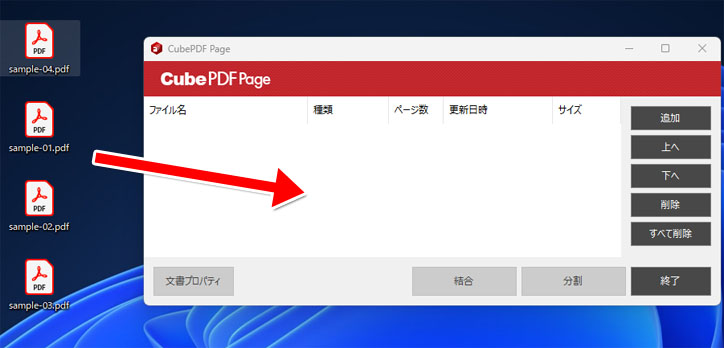 アプリが開いたら、結合したい PDF ファイルをドラッグアンドドロップします。