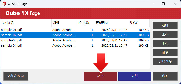 結合ボタンを押すと、リスト内の PDF ファイルが結合されます。