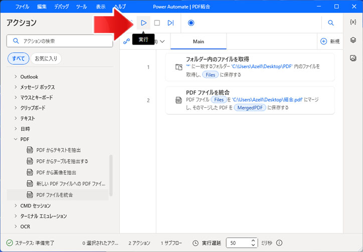 実行ボタンを押すと、フォルダーの中の PDF が1つの PDF として保存されます。