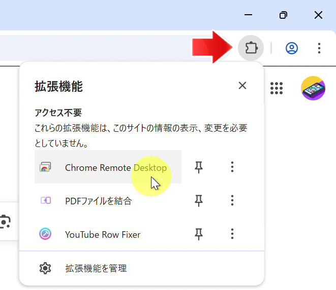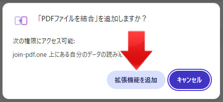 右上の拡張機能ボタン(パズルのピースのような)を押して、PDFファイルを結合を選択します。