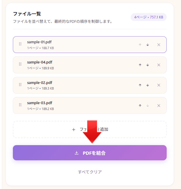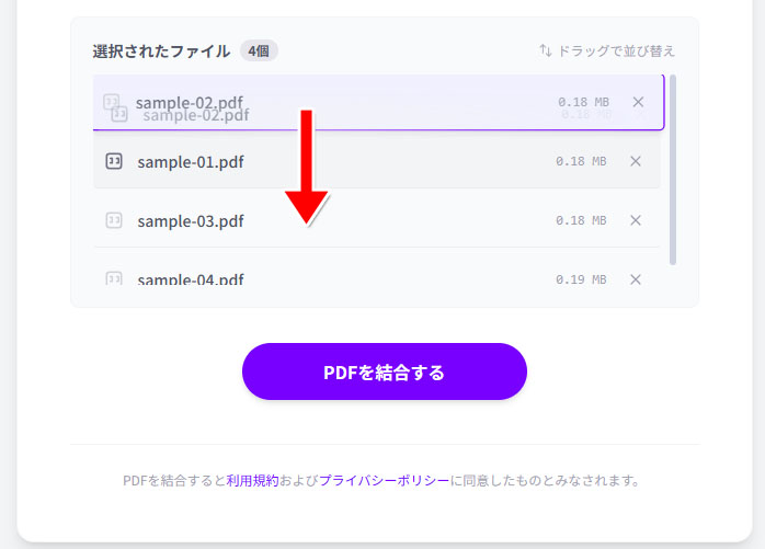 追加したファイルリストをドラッグすると、ファイルを並び替えできます。