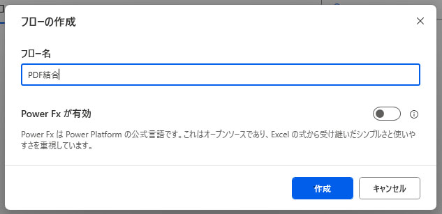 フロー名はわかりやすい名前を付けて、作成ボタンを押します。