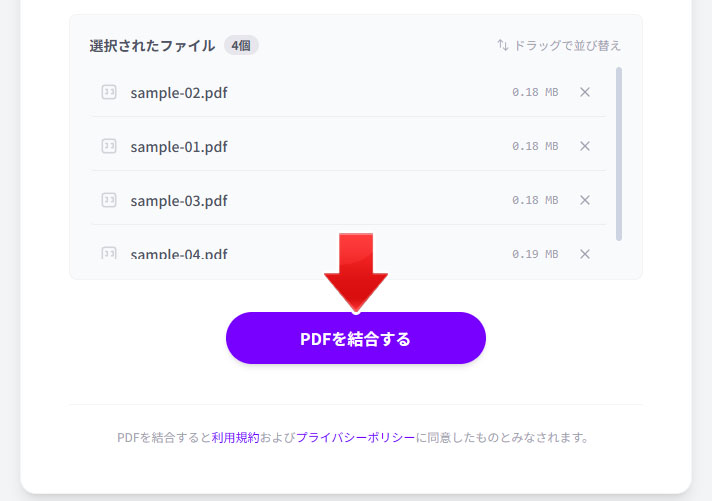 準備ができたら「PDFを結合する」ボタンを押します。