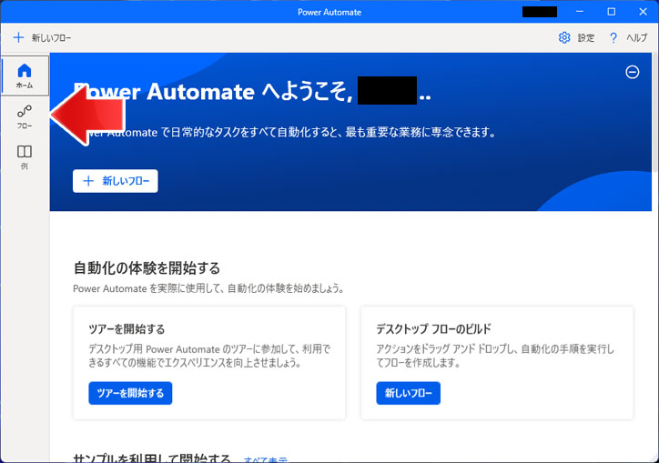 Power Automate を開いたらサイドメニューのフローを選択します。