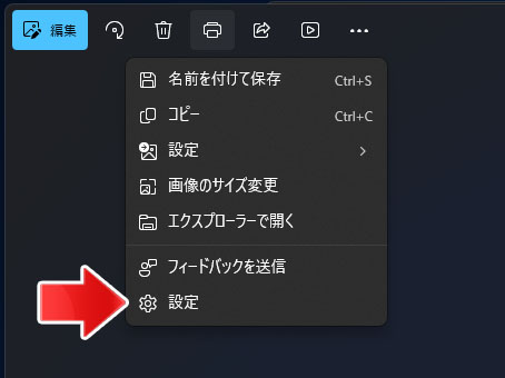 写真を開いている場合は画面右上の「…」ボタンを押して、メニューの中から設定を開きます。